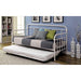 The simple metal design of this trundle bed adds flair to the delightful daybed. Powder coating available in two finishes: dark bronze or vintage white.