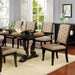 Patience Dark Walnut Dining Table, 90"(1 X 18" LEAF)L X 40"W X 30"H, 167.2lbs. Your dining area says something about you, and this dining collection says that you're welcoming, warm, and generous. The soft natural tone finish of the wood is enough to put anyone at ease, but combined with a button tufted chair, you'll have frien ds and family relaxing and enjoying their meal for hours. The trestle table base is delicately curved and offers your relaxed aura a touch of sophistication and class without being too intimidating. Features: Trestle Style Base