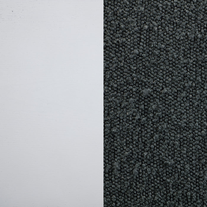 Embrace a modern minimalist presentation with this contemporary dining set. It centers on a roomy round dining table that seats four to six, with flared legs and a round shelf that adds stability and decorative potential. The set adds side chairs, each with a tall, structured silhouette and dark gray upholstery over plush foam cushions. A pearl white finish is clean and fresh, offering plenty of contrast against the gray. The set instills a clean, precise aesthetic, perfect for minimalist or maximalist decor themes.