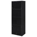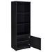 This contemporary media tower combines functionality and modern design in a sleek black finish. Built from durable engineered wood with a scratch-resistant laminate veneer, it features three open shelves for organizing media devices, books, or decor. A bottom cabinet offers concealed storage to keep clutter at bay. Its tall, clean-lined silhouette provides vertical storage, perfect for maximizing space in living rooms, home offices, or entertainment areas.