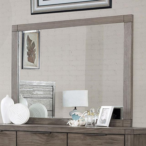 FOA WestBerenice Gray Mirror, 38"W X 1 1/8"D X 38"H, 29.48lbs. Transform your bedroom with this transitional style mirror. Built with solid wood and wood v...