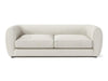 This compact living room ensemble is full of welcomed surprises. The tall arms and low back is an obvious homage to the tuxedo style, but the bulbous shape and smoother lines is a unique twist taking inspiration from the modern era. Underneath the seat cushions are high density foam, making firmer seats than one would expect for the shape that it is in. Finally, soft boucle fabric wraps around the whole piece highlighting a certain air of elegance and quiet class.